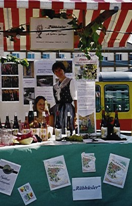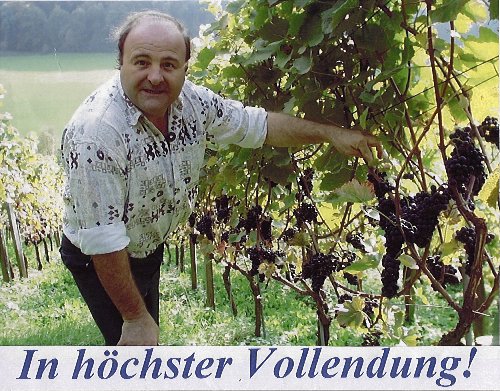 In Willi's Weingut wird ausschlieslich 700g Auslese und Spätlese in Barrique produziert.Links der Winzer und sein Traubengut, rechts die Winzerin am Degustationsstand.